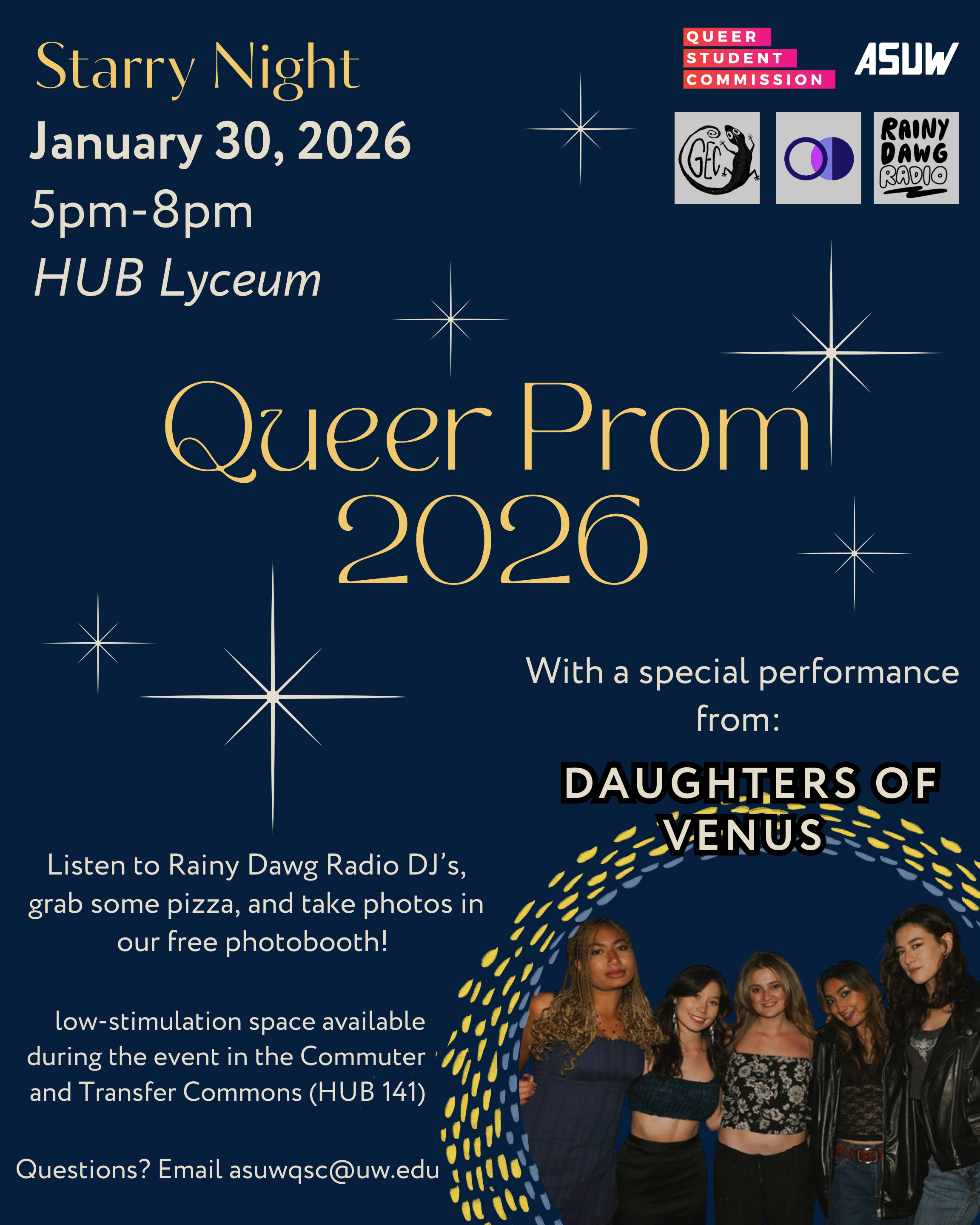 Submitted by Meera Roy on January 21, 2026 - 9:12 am Queer Prom Sponsored by the Gender Equity Commission at ASUW. News Topic Advising