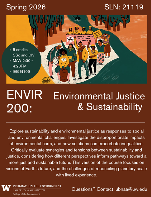 ENVIR 200 SLN 21119 Sustainability and Environmental Justice (5) SSc, DIV