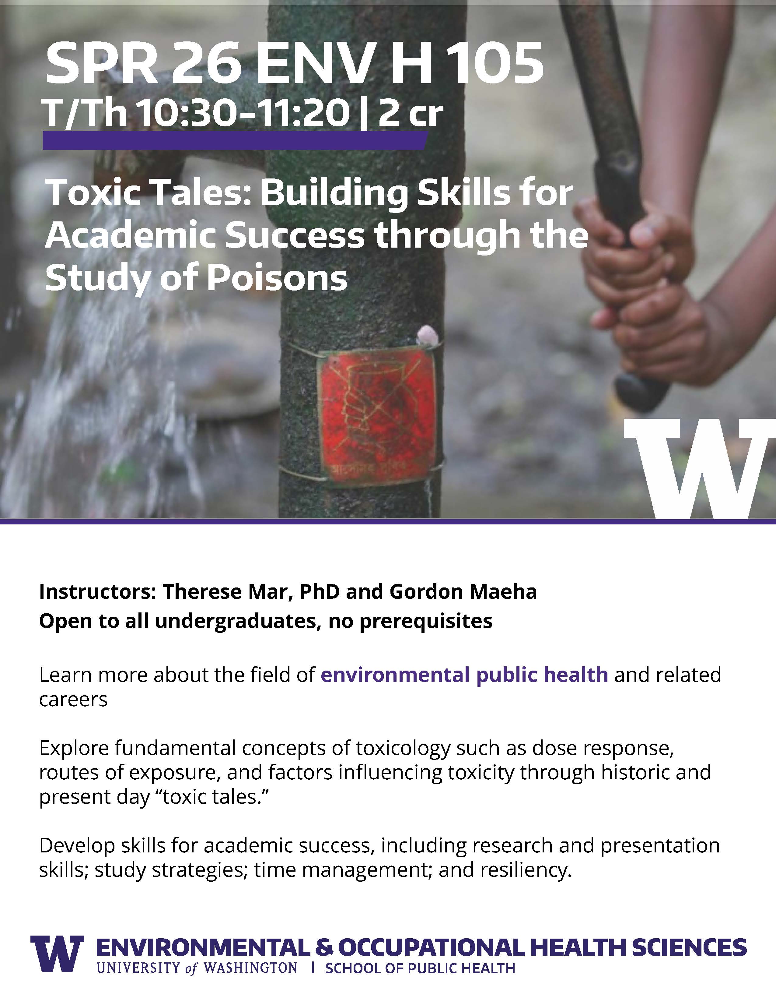 - Explore fundamental concepts of toxicology such as dose response, routes of exposure, and factors influencing toxicity through historic and present day “toxic tales.”