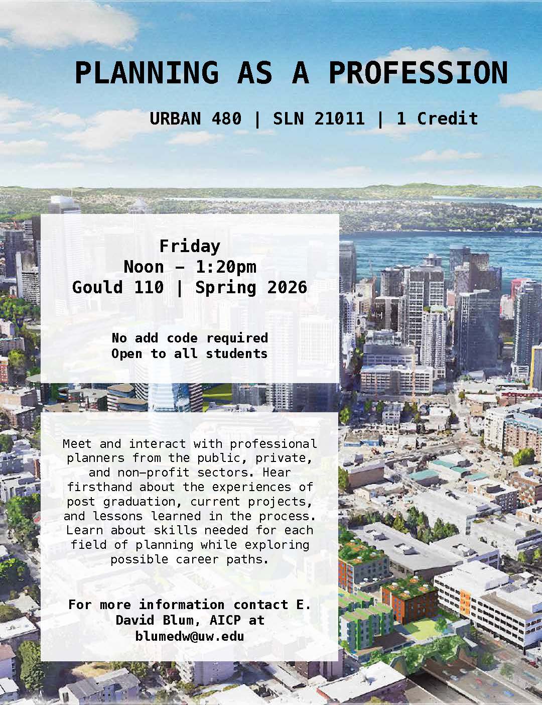 Submitted by Meera Roy on February 5, 2026 - 10:13 am URBAN 480 flyer Spring2026 From the Department of Urban Design and Planning News Topic Advising