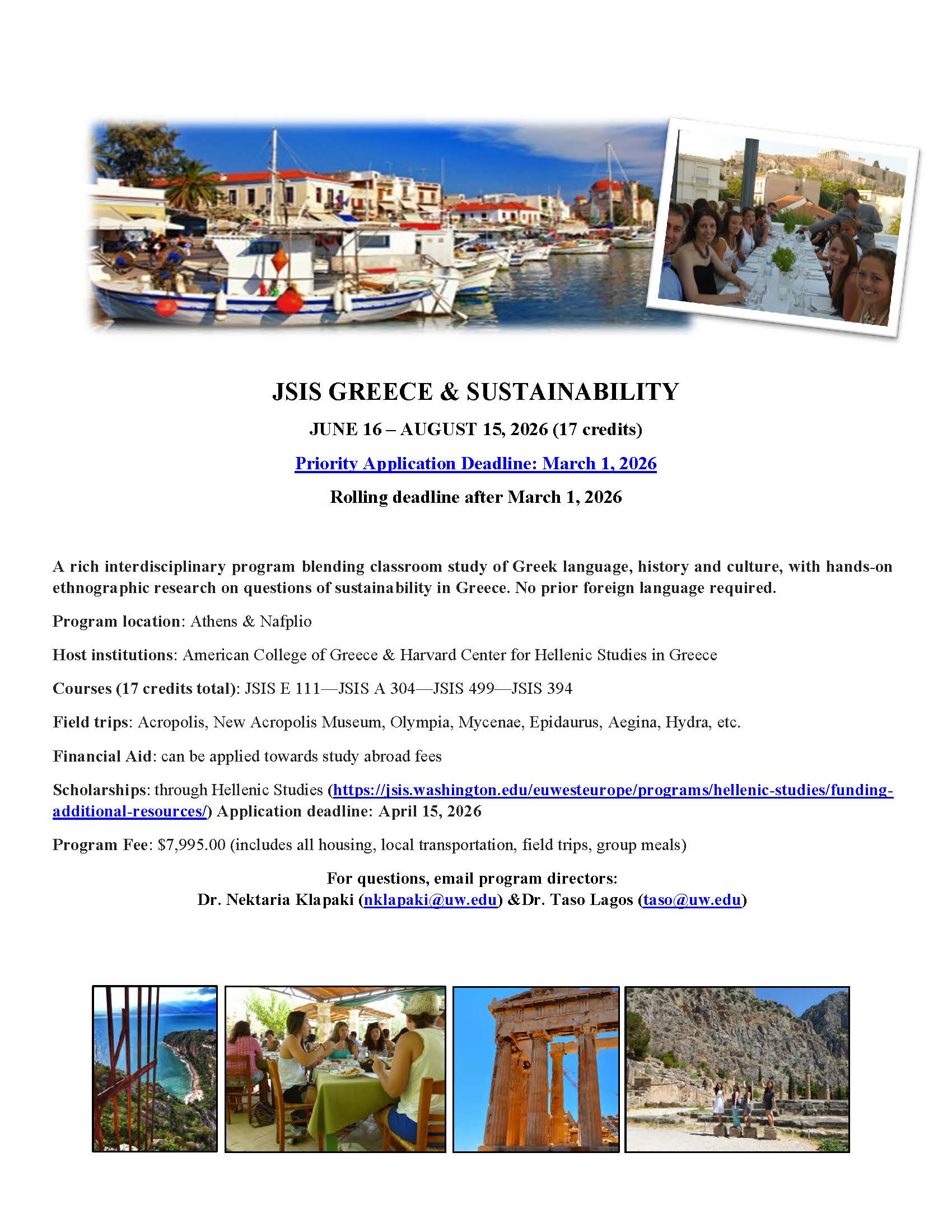 For more information and to apply, please visit the JSIS Greece & Sustainability Study Abroad Program website and see this PDF flyer.