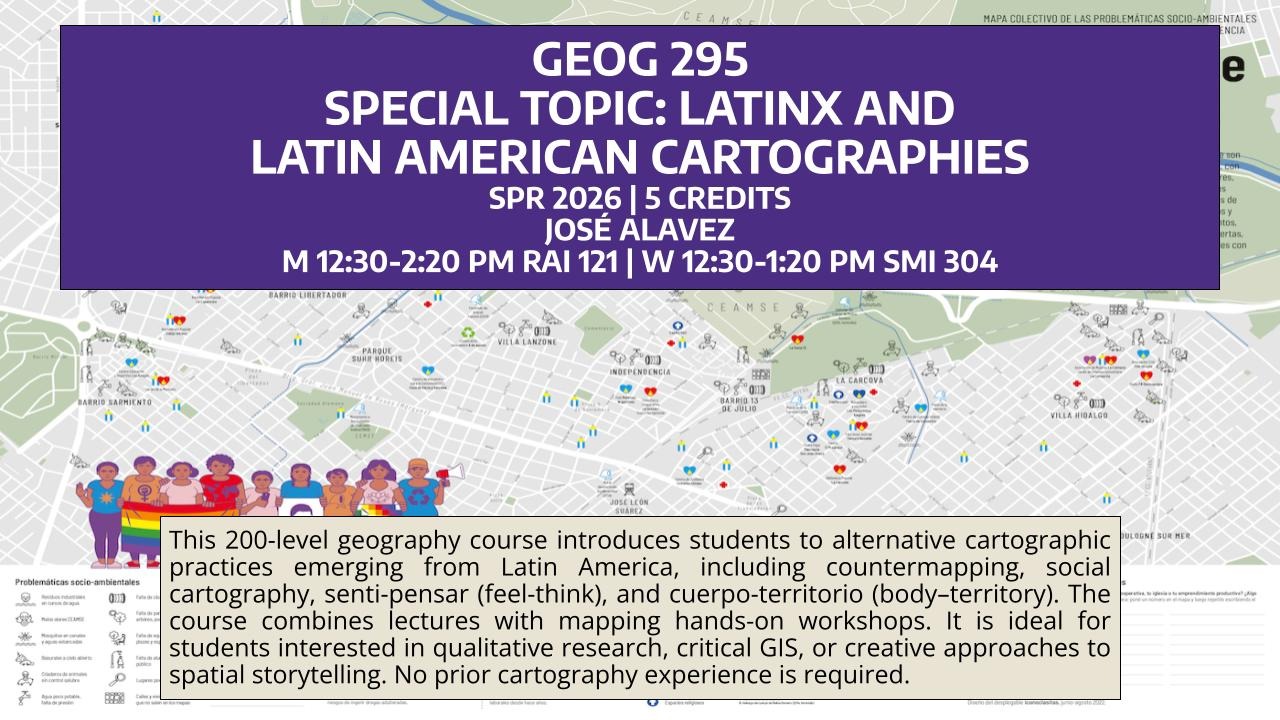 GEOG 295 Special Topics in Geography: Latinx and Latin American Cartographies (5) SSc